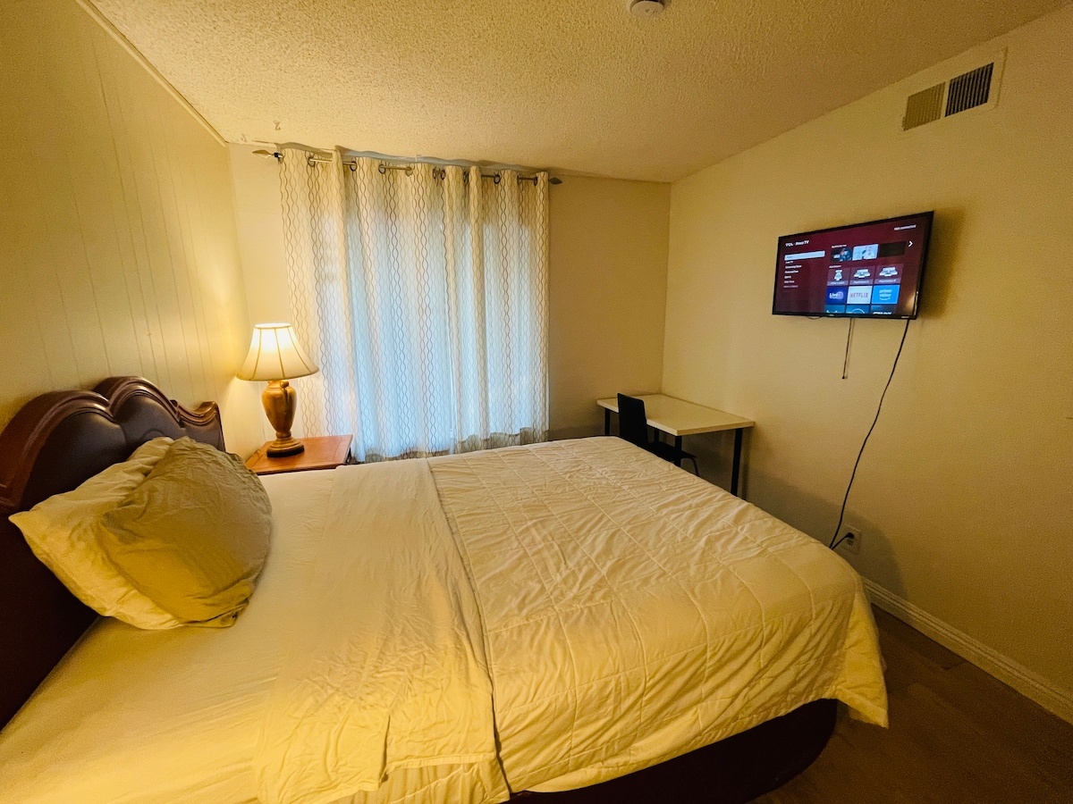 Perfect for outdoor-loving or business professional females, this space is a short drive from Red Rocks Canyon and Mount Charleston. Enjoy hiking, rock climbing, or soaking in the natural beauty of these iconic spots while relaxing in your private room with Queen bed and attached bathroom. Your room also includes a desk and smart TV for work or streaming your favorite shows. Walking distance to Grocery and Restaurants with easy access to Freeway.