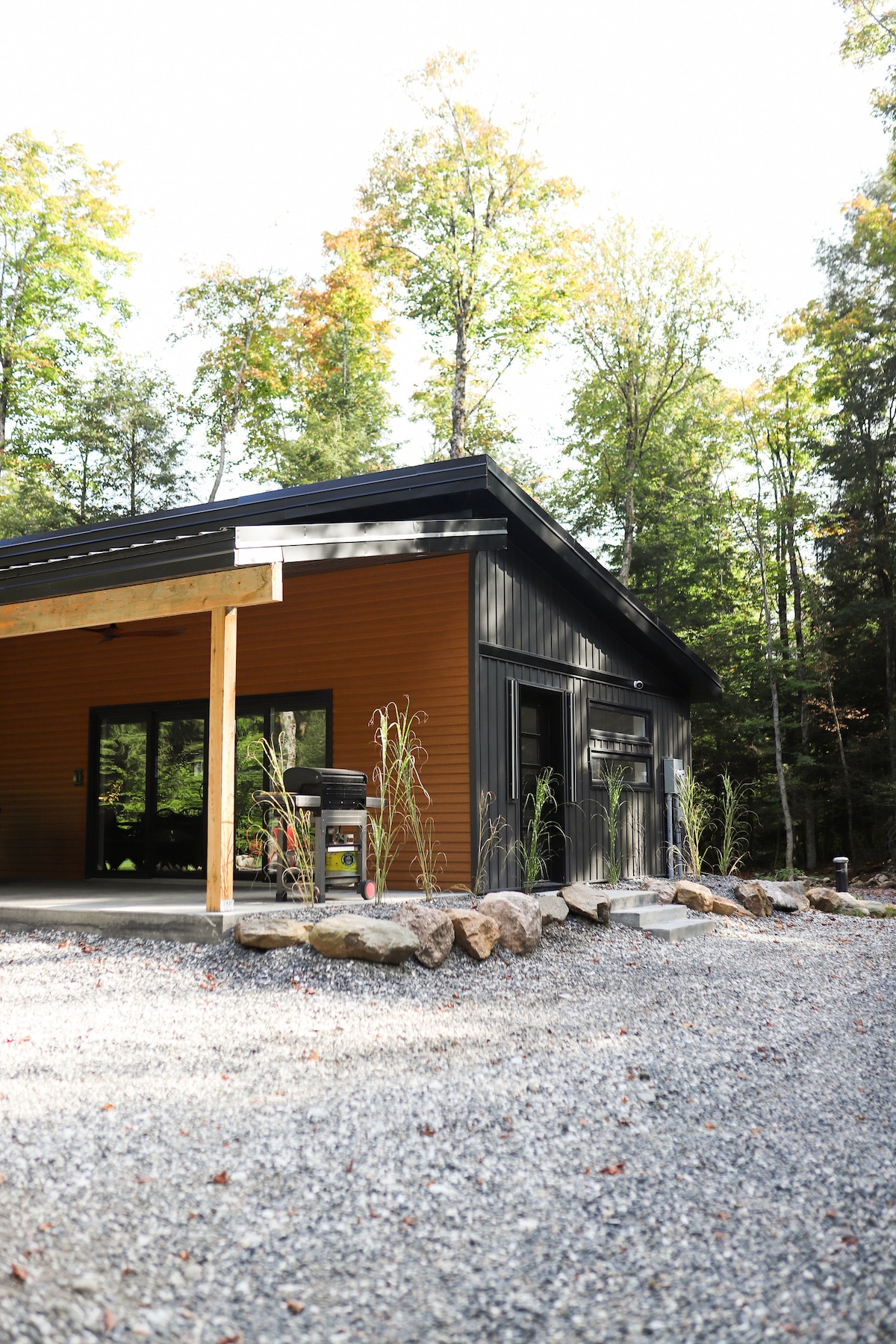 Esta pequeña casa de campo de lujo de 2 dormitorios con loft es perfecta para una escapada romántica en pareja o en familia. Ubicada en 1,5 acres entre majestuosos árboles y afloramientos de granito, crea hermosas vistas desde la terraza con barbacoa, chimenea, jacuzzi o enormes ventanales en toda la casa. La presa de agua y el río al otro lado de la carretera crean relajantes sonidos de cascada que se escuchan desde la cubierta o se disfrutan de cerca desde la cubierta y el muelle privados de la costa. Explora el río Muskoka en kayak, surf de remo o neumáticos de río.