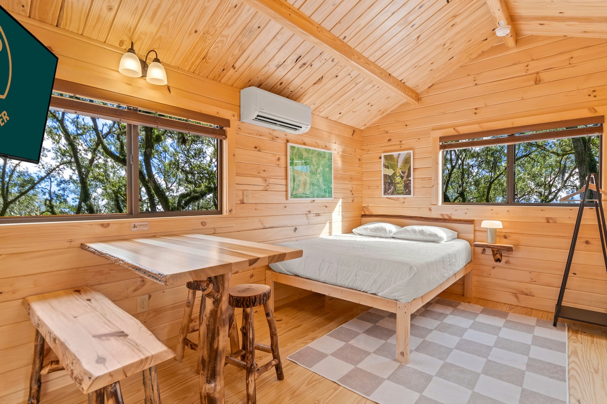 ¿Alguna vez te quedaste por la noche en el bosque? Cruza la lista de deseos con nuestro alojamiento de estilo «minicasa» cerca del parque estatal de Hillsborough. Calificado como #7 en PureWow como una de las 20 mejores cabañas de Airbnb. Esta nueva minicasa de lujo se diseñó cuidadosamente para capturar la belleza natural de su antiguo entorno de bosque virgen de Florida. Glamping en su máxima expresión con las mejores comodidades modernas, como una cocina gourmet completa, ducha tipo spa, Internet de fibra óptica 1G, TV y un mini split de aire acondicionado y calefacción súper silencioso.