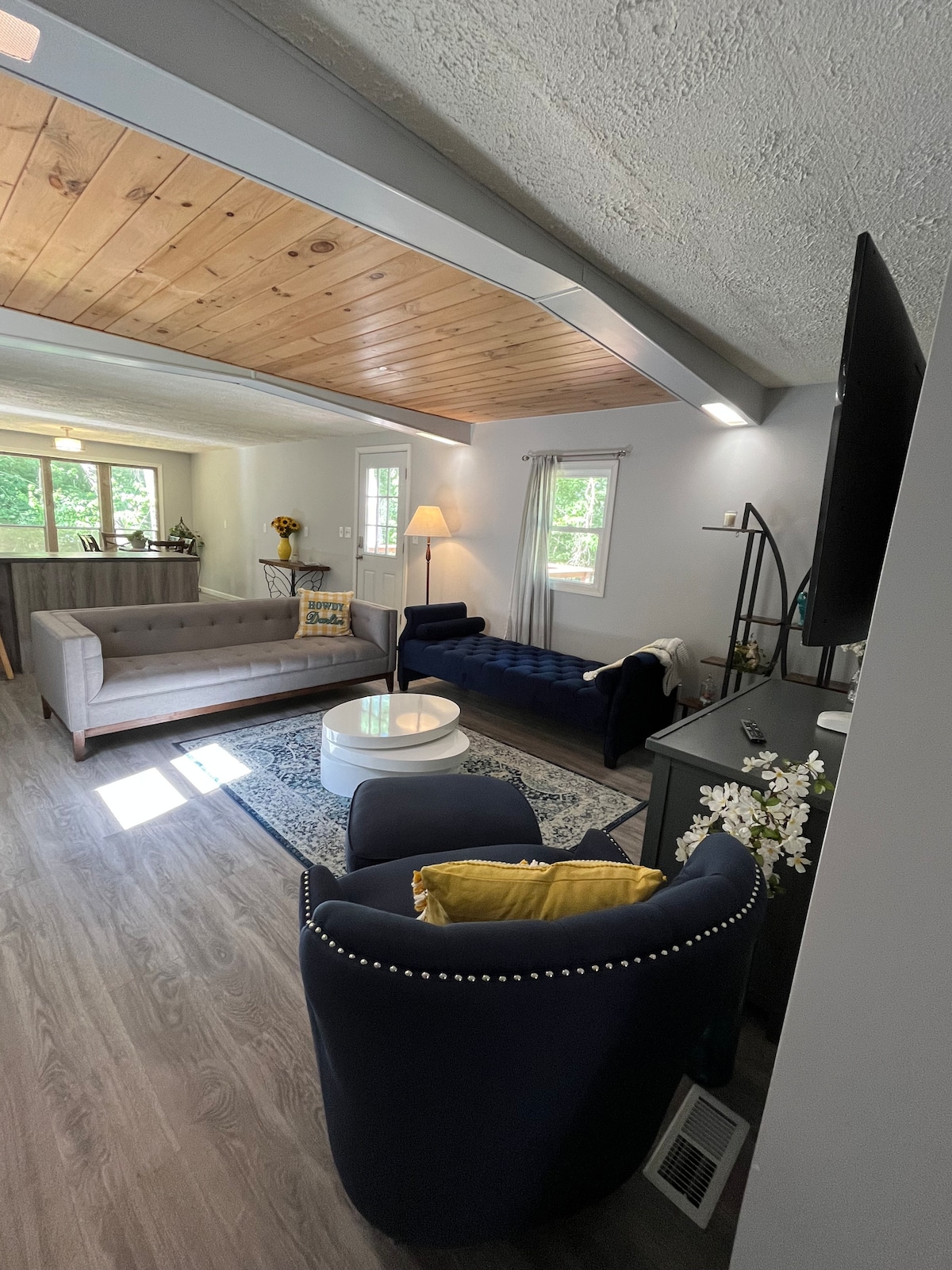 ¡Síguenos en IG! @thegreenlightlodge El Green Light Lodge es una casa de diseño único inspirada en una época pasada. Diseñamos y renovamos con cariño esta casa basándonos en el sueño de que la familia y los amigos puedan reunirse bajo las estrellas, reconectar y compartir recuerdos invaluables durante muchos años. Es una casa alpina elevada de 3 dormitorios y 2 baños en la región del lago NE Poconos, a unas 2-2,5 horas de la ciudad de Nueva York. Estamos en un lago privado cerrado y en una comunidad llena de servicios llamada The Hideout, ubicada en Lake Ariel, Pensilvania.