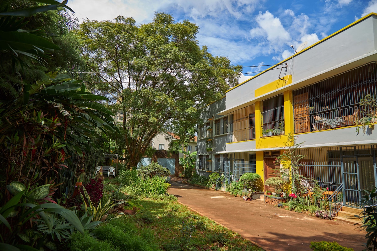 A large, serene compound with a uniquely built home. Having breakfast or dinner at the outside veranda is a relaxing experience, right at your doorstep. The unique architecture connects the living room, dinning and kitchen as if it is in one space. With three bedrooms, this is an ideal place for a family or a couple of friends. The place is fully equipped, ideal for both long and short stays. Mind that Kampala experiences power black-outs every now and then and currently we don't have back-up.