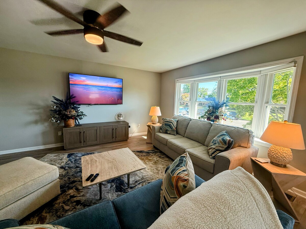 ¡Te damos la bienvenida a tu escapada a Port Clinton! Esta casa de dos niveles recientemente remodelada está diseñada pensando en las familias. A pocos minutos del lago Erie, el centro de Port Clinton y el ferry a Put-in-Bay, es la base perfecta para tus vacaciones. Ya sea que estés aquí para un viaje de pesca, una aventura de isla en isla o simplemente para relajarte, ¡esta casa cuenta con todo lo que necesitas para una estadía cómoda y memorable! - Jardín grande. - 5 amplias habitaciones. -2 salas de estar - Cocina totalmente remodelada. - Baño nuevo en la marca.