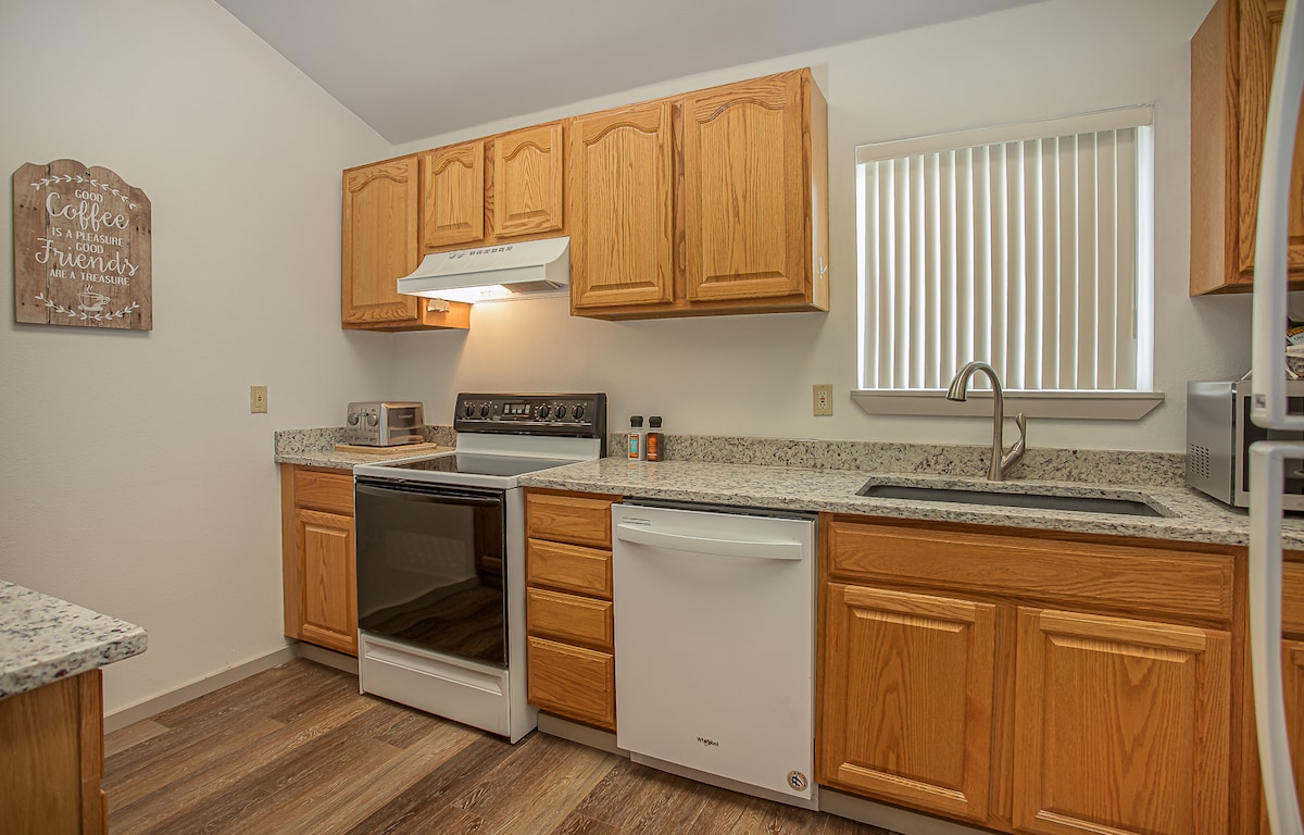 Con una ubicación céntrica en Moses Lake, nuestra casa de 2 dormitorios y 1 baño ofrece mucho espacio para tus necesidades de viaje/trabajo. Nuevos suelos, armarios, electrodomésticos y mucho más. El segundo dormitorio tiene un espacio de oficina dedicado, junto con una cama nido doble. Nuestro gran patio vallado es ideal para mascotas. Amplio estacionamiento fuera de la calle para barcos, caravanas y remolques. Situado a 2 minutos del recinto ferial, a 4 minutos del parque de cascada, a 12 minutos del campo de golf y a 45 minutos del anfiteatro Gorge. ¡Esperamos que te guste nuestro hogar!