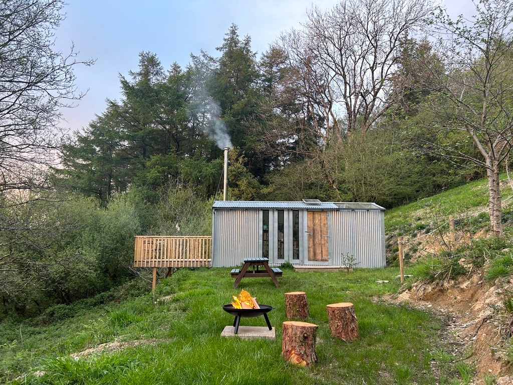 'Bluehill Cabin' (el antiguo Pig Shed) proporciona un refugio privado de comodidad y paz. Una acogedora escapada al campo galés, con unas vistas impresionantes y cielos oscuros y llenos de estrellas. Relájate totalmente y disfruta de las vistas. Con un telescopio para mirar a través de las colinas galesas y observar las estrellas, disfruta del fogón y observa la puesta de sol. Una EXPERIENCIA DE VACAS DE TIERRAS ALTAS de cerca está disponible solo para huéspedes, para reservar a la llegada. Cerca de pistas forestales y de las playas de Aberaeron y New Quay para avistar delfines y deportes acuáticos.
