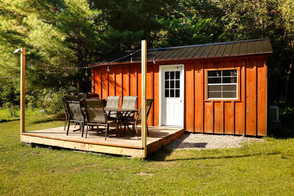 ¡Cabaña con camping y chimenea incluidas! Nuestra cabaña de 10x10'se encuentra a 1/2 km del bosque en 260 hermosos acres. Experimenta la vida fuera de la red con los servicios suficientes para estar cómodo. Asa comida en la fogata, camina o acurrúcate en la estufa de leña y observa la vida silvestre. Una reserva es para toda la ubicación, y tú decides quién se queda con la cabaña (capacidad para 2 personas) y quién trae las tiendas de campaña. Una segunda cabaña 'litera', por una tarifa adicional, siempre está disponible para tus huéspedes adicionales. ¡Pregúntanos al respecto!