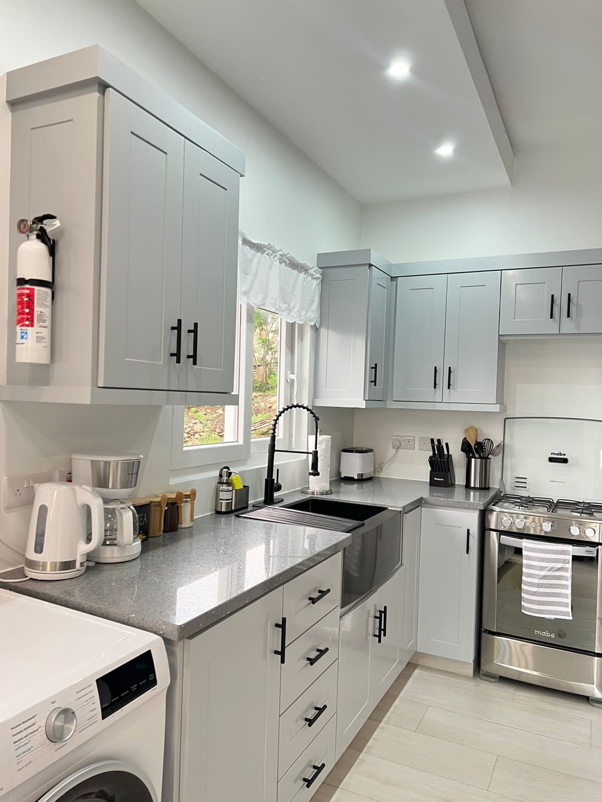 Ubicación ideal. Registro de entrada con teclado. A 10 minutos del aeropuerto. Muchos supermercados cercanos. A 2 minutos en coche de Spice Island Marina. A 6 minutos en coche de Grand Anse Beach y Spiceland mall. A 4 minutos a pie de LAE Beach, Bar & Restaurant. A 15 minutos de la ciudad y del centro comercial Esplanade. Ubicado a lo largo de las rutas de autobús SGU. Hay autos de alquiler disponibles para alquilar por un costo adicional previa solicitud. Un baño. Dos habitaciones. Sala de estar, cocina completa y comedor. Zona de patio. Espacio de trabajo, lavadora y secadora.