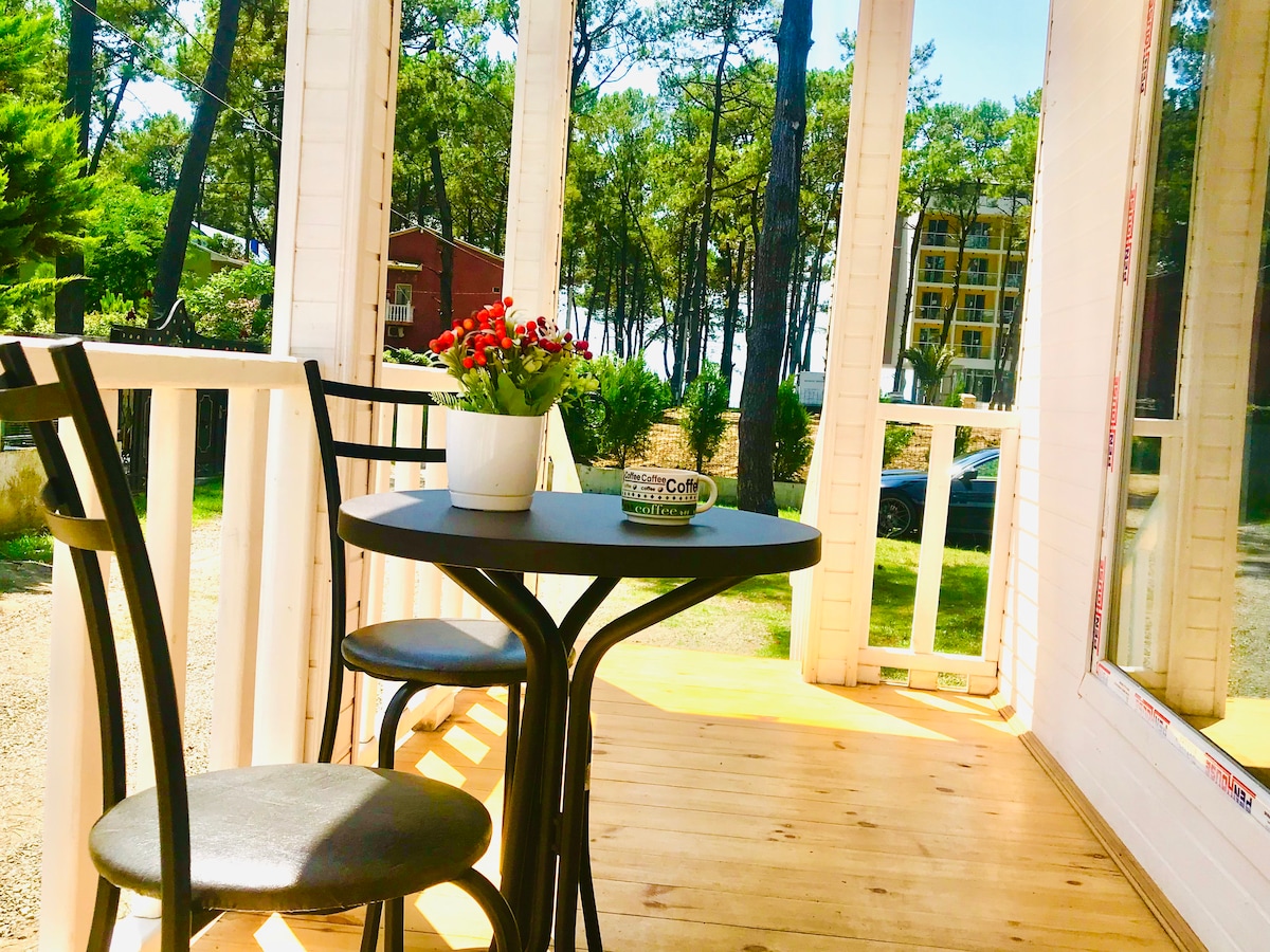 Casa tranquila frente a la playa. Majestuosa vista al bosque de pinos