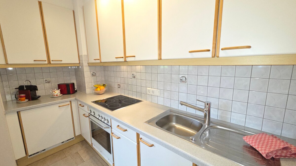 All discounts are already included, please go ahead and book the property if your travel dates are available. Below please see all the listing details "Bergfeld", 2-room apartment 52 m2 on 2nd floor, south-west facing position. Bright, beautiful furnishings: living/sleeping room with 1 double sofabed and satellite TV. Exit to the balcony. 1 double bedroom. Open kitchen (dishwasher, 4 ceramic glass hob hotplates, toaster, kettle, microwave, electric coffee machine) with dining nook.