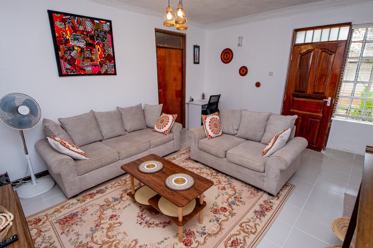 Step into a beautifully curated space that celebrates African culture & art! Uniquely designed unit features handcrafted décor, warm earthy tones, and a vibrant yet cozy ambiance - perfect for travelers seeking comfort with a cultural touch. ✨ Includes: ✔ Fast WiFi & Netflix ✔ Outdoor sitting area ✔ Study desk ✔ Free parking & 24/7 security 📍 Nearby: 🏛 Karen Blixen Museum | 🦓 Nairobi National Park | 🏌️ Karen Country Club | 🛍 Galleria Mall