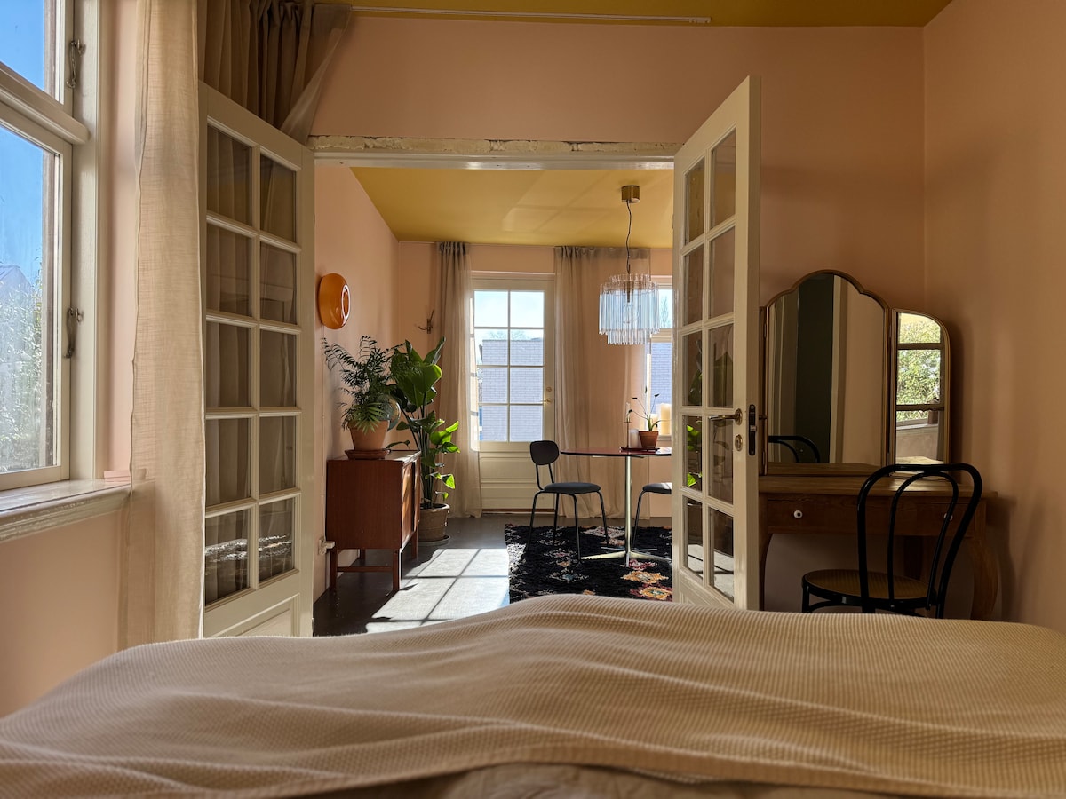 Bonito alojamiento con espacio para dos adultos, céntrico en el centro de Svendborg. Apartamento luminoso y moderno. A 10 minutos a pie de la estación de tren/autobús y los ferrys. Opciones de compra cerca. La casa tiene una ubicación agradable en una zona tranquila y con un hermoso jardín trasero con pequeñas terrazas hermosas y rincones acogedores para uso gratuito. Un hermoso jardín con manzanos y árboles con flores, jardín de hierbas donde el huésped también puede disfrutar de una pieza de fruta o hierbas, o para ponerse un poco a la sombra.