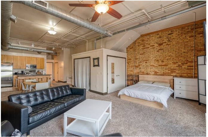 El ambiente de este loft estudio amueblado es una mezcla de estética y decoración modernas combinadas con elementos originales del histórico edificio del siglo XIX: se han conservado el ladrillo visto y los altos techos industriales. Amplio plano de planta abierta, acogedora sala de estar, cocina contemporánea totalmente equipada, cómoda cama tamaño queen y baño completo. Convenientemente ubicado en el centro de Lansing, a pocas manzanas del Capitolio, con todos los restaurantes y atracciones interesantes que una ciudad capital tiene para ofrecer.