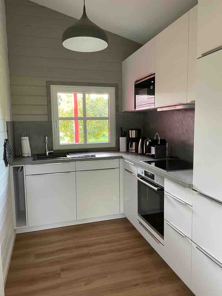 Das Haus ist zweckmässig und modern eingerichtet. Ein großes Sofa im Wohnbereich kann als zusätzl. Schlafplatz genutzt werden. Große Einbauschränke im Schlafraum bieten viel Stauraum. Die Wohnküche ist ausgestattet mit einem XL Kühl- Gefrierkschrank, einer Waschmaschine, einer Koch/ Backkombination sowie allem, was man zum Kochen und Backen benötigt. Kaffeemaschine, Wasserkocher und Mikrowelle sind ebenfalls vorhanden. Im schönen großen Garten gibt es einen eigenen Sitzbereich.