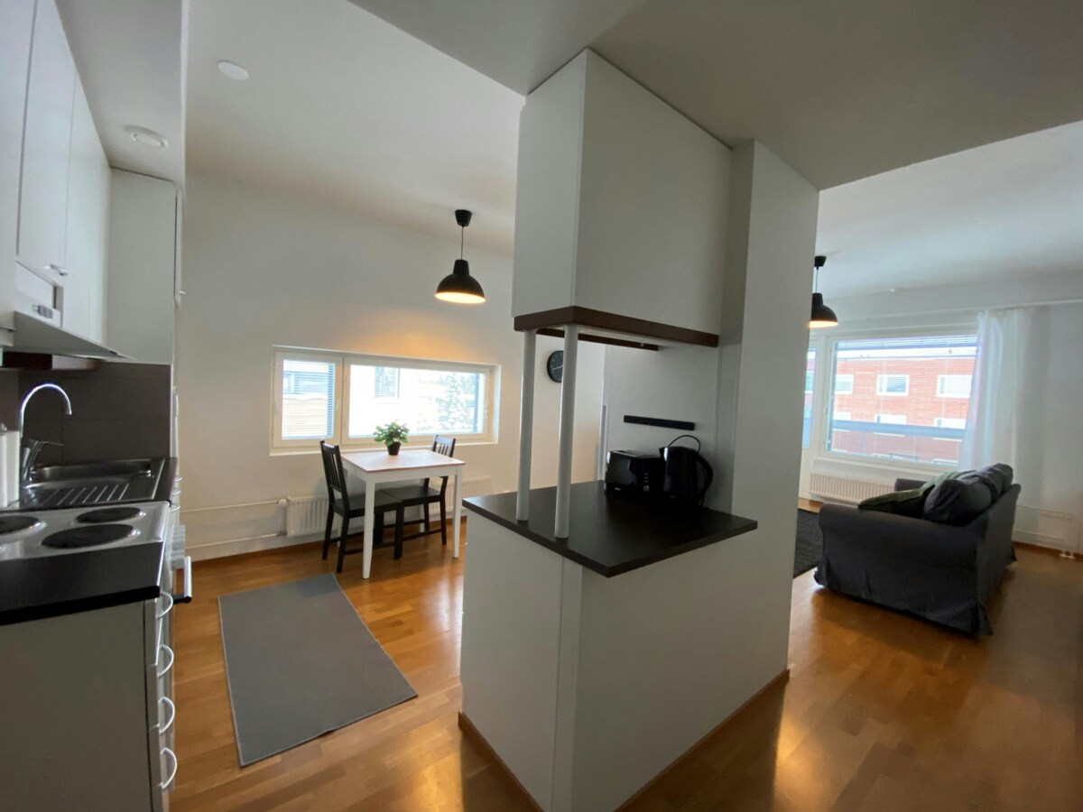 Apartamento elegante y moderno en el corazón de Tornio. Cuenta con una cocina bien equipada con lavavajillas, un sauna privado y una acogedora sala de estar con sofá y TV. Incluye wifi, estacionamiento, ropa de cama y toallas. A solo unos minutos a pie hay un centro comercial, restaurantes y la frontera con Suecia.