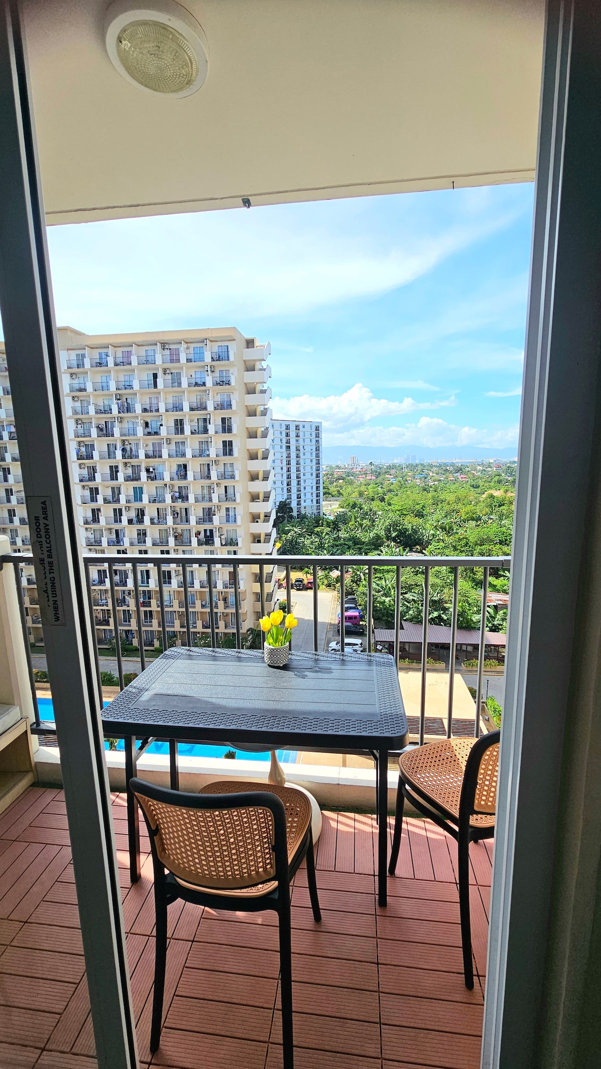 Crea tus recuerdos más vibrantes en nuestro espacio inspirado en Terracota con balcón frente a la enigmática piscina. El lugar está cerca de CCLEX, que te llevará al corazón de la ciudad de Cebú en poco tiempo. Tu estancia está literalmente a minutos del aeropuerto, centros de negocios, centros de spa, mercados, restaurantes y playas en Mactan. La habitación te ofrecerá una experiencia de vida en un centro vacacional con un toque elegante y minimalista. Puedes cocinar en la cocina pequeña, utilizar la lavadora y guardar productos en nuestra nevera de tamaño completo.