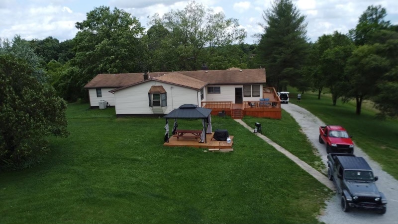 Relax at this peaceful, renovated farm house sitting on 44 acres. Located between Elizabethtown and Glendale, this property is truly beautiful and serene. You’ll have plenty of space to spread out with the 3 bedrooms (2 King beds, 1 double/1single bunk), full size kitchen & dining room. Huge family room with a 75” flat screen TV. The house has lots of amenities such as a screened in porch, wrap around deck, gazebo, high speed WiFi, washer and dryer and so much more.