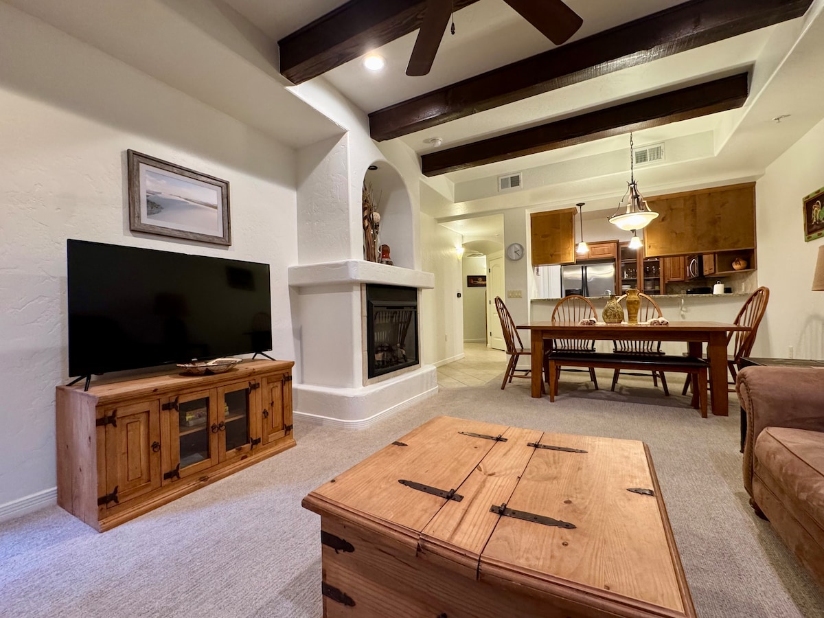 Esta moderna casa totalmente amueblada es perfecta para escapadas de fin de semana o estancias largas. Con lo último en electrodomésticos y estilo, la villa Powder River ofrece la comodidad del hogar con una sensación de lujo. Transmite Netflix frente a la chimenea de piedra apilada, desconecta en la ducha de lluvia de guijarros o simplemente relájate en el porche trasero con las hermosas puestas de sol de Nuevo México. Este elegante espacio puede ser la escapada romántica que estás buscando o acomodar cómodamente a tu grupo de 7 personas.