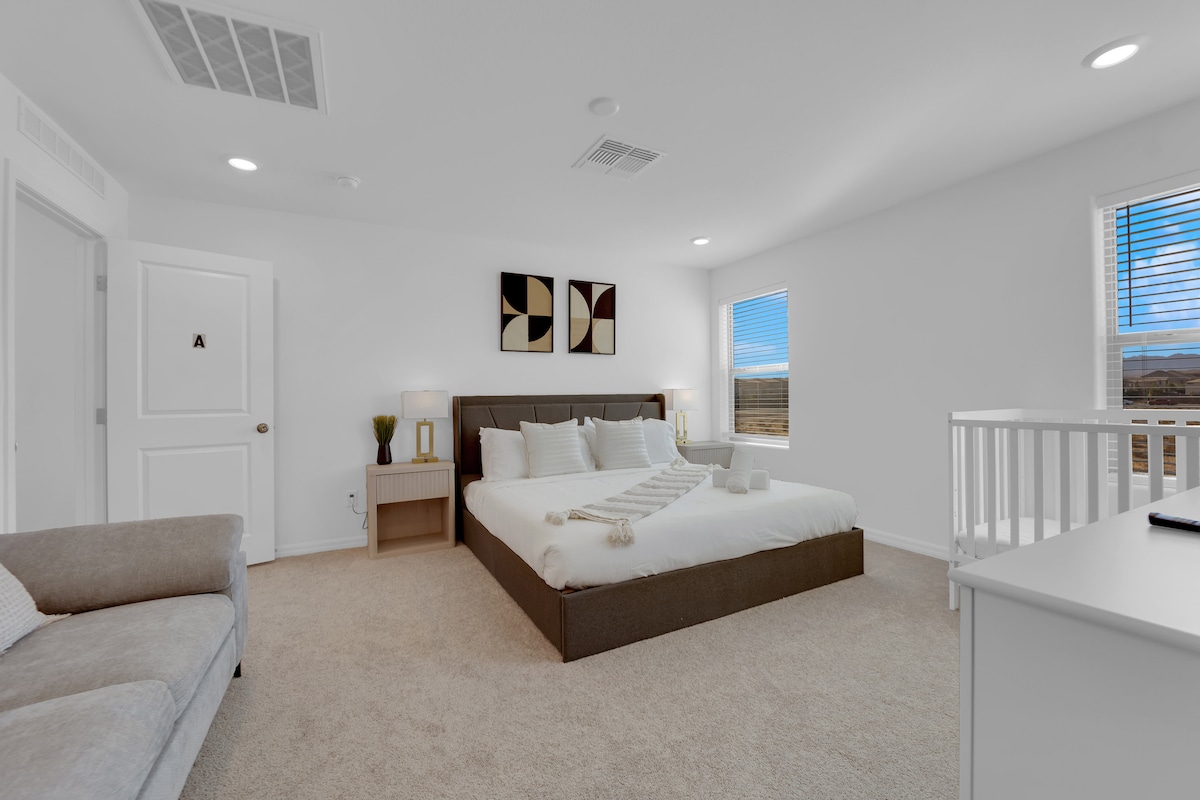 Una casa de huéspedes (casita) dentro de un complejo de 1 acre que está a 8 minutos del aeropuerto, a 10 minutos del Strip y a menos de 15 minutos del nuevo estadio Allegiant. La casita consta de 3 minisuites (un dormitorio con baño completo privado), una sala de estar/comedor, cocina completa, lavandería y tocador. El área común fuera de la casa de huéspedes incluye la piscina, el spa, la sala de ejercicios, la cancha de pickleball, la cancha de bochas y el patio con una barbacoa de gas y una eléctrica. PARA NO COMPARTIR LAS ZONAS COMUNES: ver más abajo.