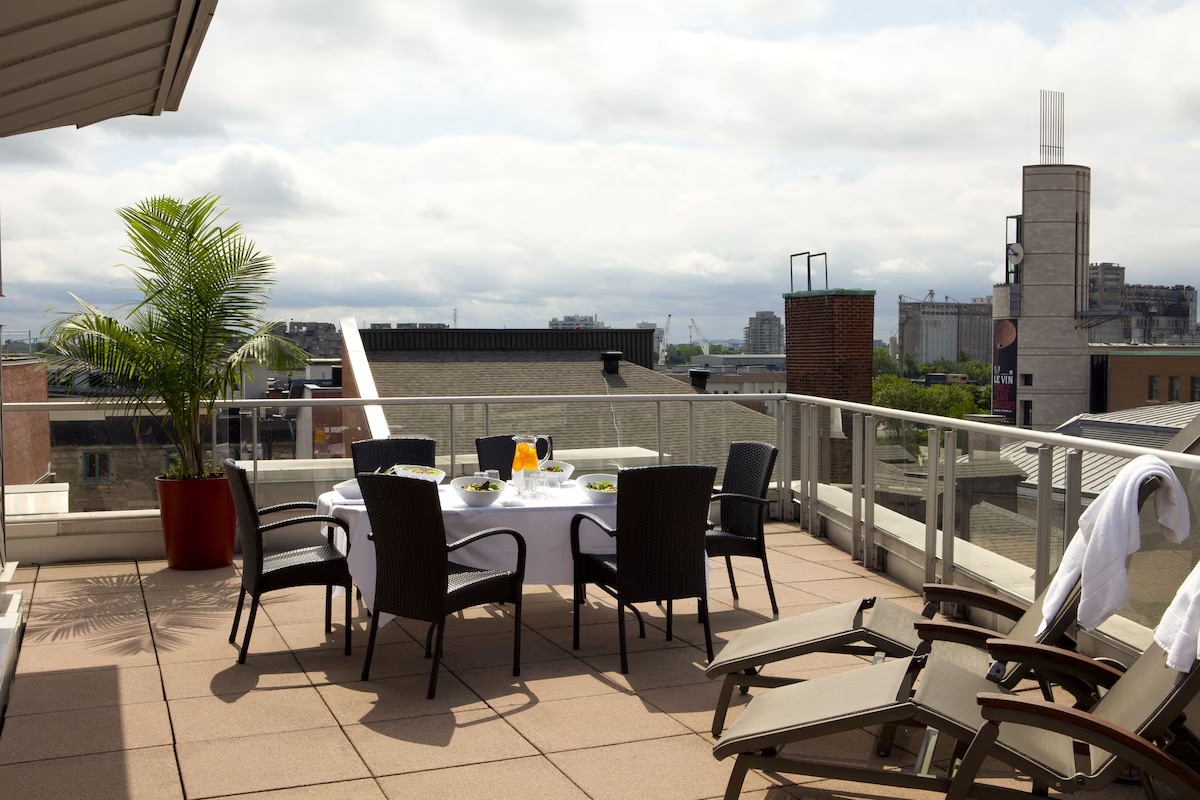 Elegante terraza de la suite para cenar en el casco antiguo de Montreal