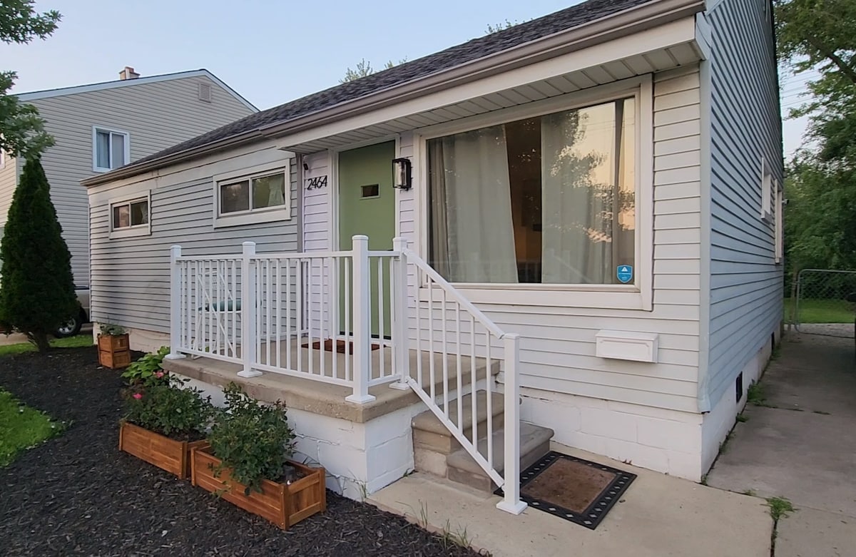 Disfruta de tu estancia en esta elegante casa de Berkley de 2 dormitorios y 1 baño, a pocos pasos de bares, restaurantes, heladerías, tiendas locales y gimnasios. A solo 5 minutos del Hospital Beaumont. Cerca de Woodward Ave, 696, el zoológico de Detroit, a 20 minutos de Detroit. La casa está bien equipada con todas las comodidades del hogar. INCLUYENDO un espacio de entrenamiento con TV inteligente en el sótano terminado. Todos los electrodomésticos nuevos, lavadora/secadora, bar de café/té totalmente surtido. Entrada sin llave. *No se permiten fiestas ni eventos. No se permite fumar. No se admiten mascotas.