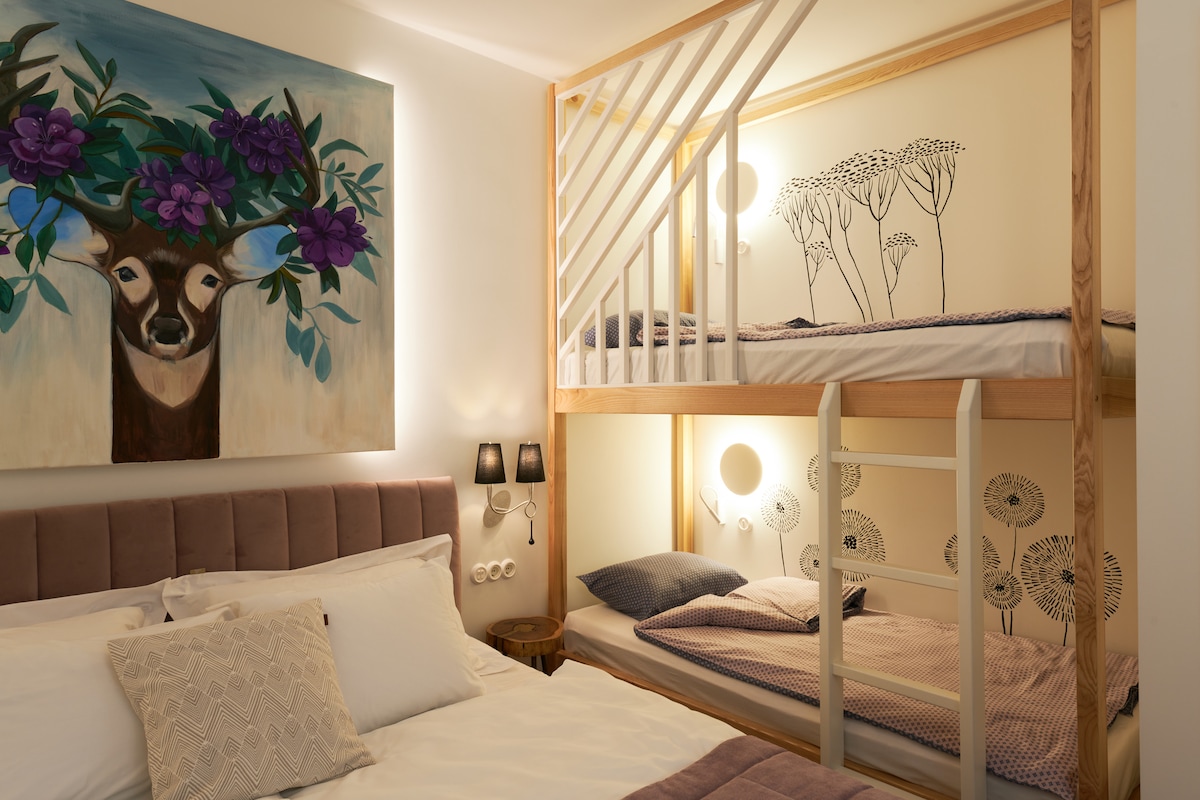 Spacious design flat&parking in quiet center