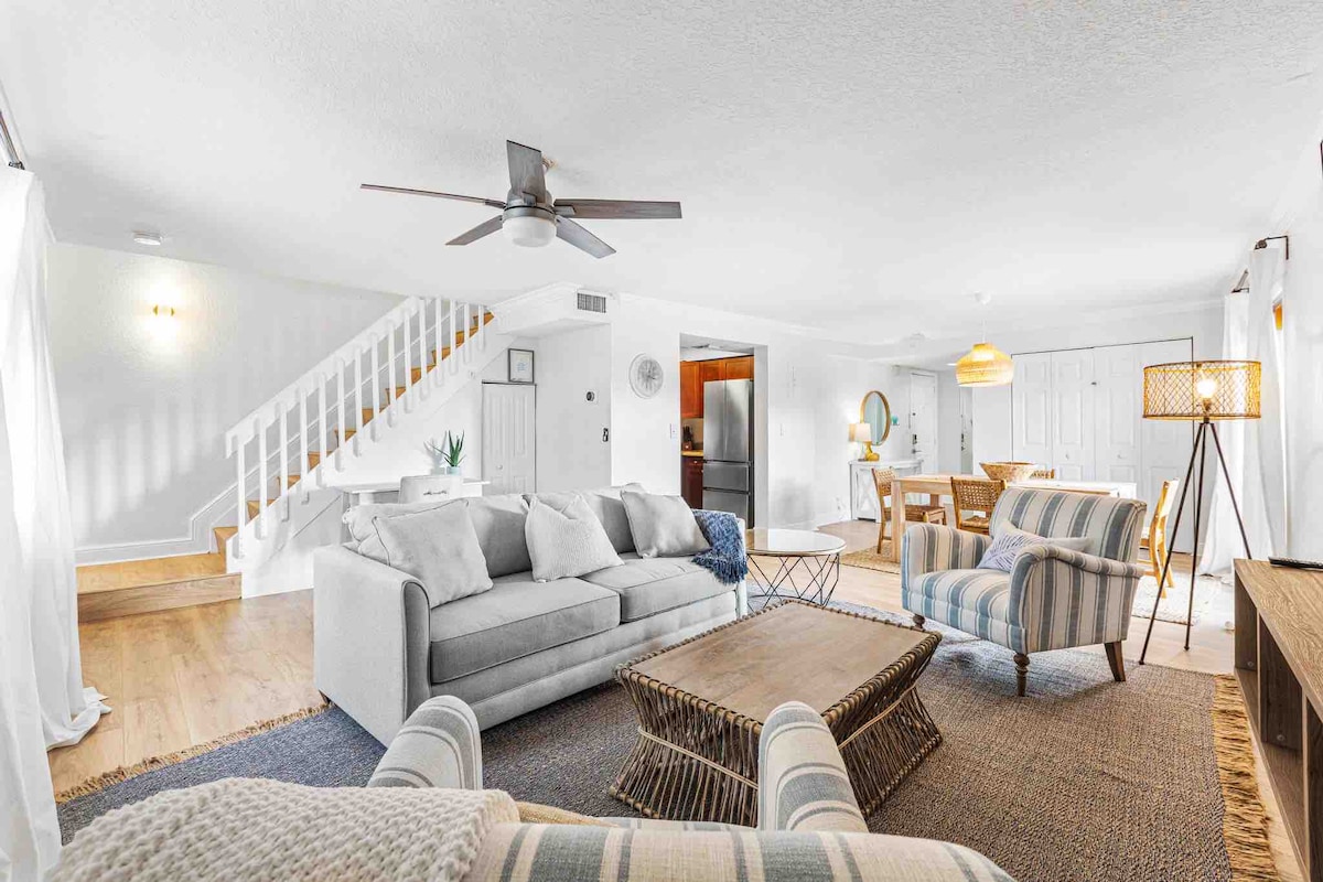 Esta impresionante "Escapada a Poinciana" se encuentra a pocos pasos de la playa y de toda su vida diurna y nocturna, tiendas de restaurantes y una tienda de comestibles (Publix), todo a pocos pasos. Este hermoso y cómodo apartamento 3/2 es perfecto para relajarse. Aquí todo es comodidad. La sala de estar tiene un televisor de alta definición grande de 55 pulgadas y WIFI rápido. Estamos en un vecindario muy seguro en la playa, orientado a la familia y. El departamento tiene una gran área de piscina compartida y también una lavandería de monedas compartida.