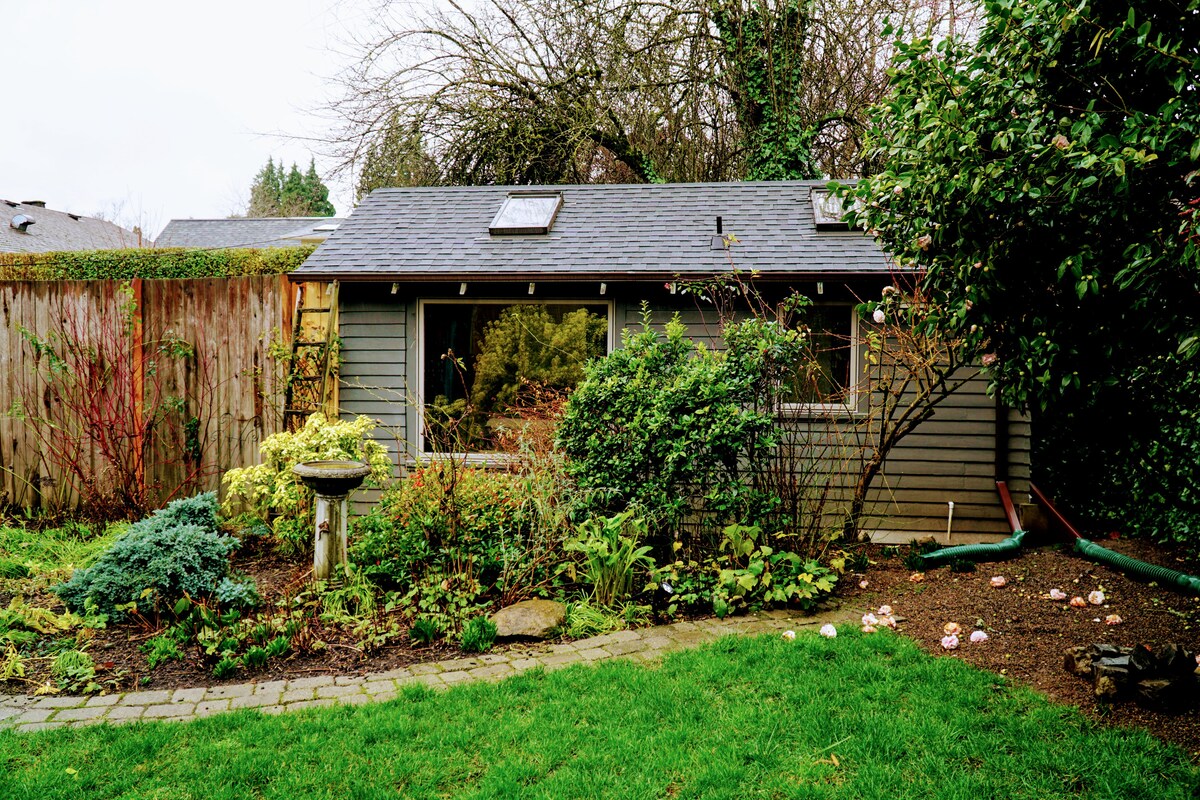 Cozy, sunlit studio apartment with great morning light from two skylights overhead. Our studio is the perfect place to explore Portland from. We're a short walk to the best of historic Southeast Portland--Belmont, Stark, Burnside, Hawthorne, and Division streets. Many of Portland’s beloved restaurants, bars, and coffee shops, along with towering pines and spring-fed pond of Laurelhurst Park, are just around the corner. Enjoy the garden patio for morning coffee or drinks at night.