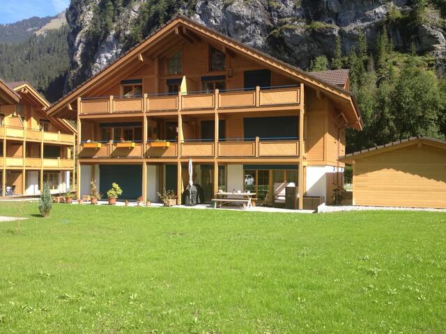 Te invitamos a alojarte en un lugar muy especial en el corazón del impresionante valle de Lauterbrunnen. Nuestro apartamento con jardín muy espacioso tiene vistas ininterrumpidas de las espectaculares cascadas de Staubbach y vistas de gran alcance del valle y las montañas. Fácil acceso a toda la región de Jungfrau y al resto de Suiza. Hemos sido galardonados con cuatro estrellas por Swiss Tourism y ofrecemos un lujo espacioso y asequible para nuestros huéspedes en esta maravillosa ubicación conveniente.