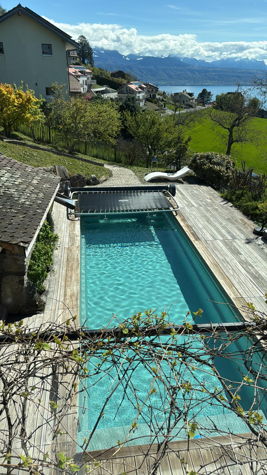 En una zona exclusiva y tranquila, nuestros huéspedes sienten la magia en el aire del campo de lavanda y en la brisa, mientras disfrutan de impresionantes vistas sobre el lago, ¡rodeados de lo mejor de la naturaleza! Los arbustos y los árboles, los Alpes y los senderos junto a los viñedos de la región vinícola más bella del mundo crean, calman y dejan que nuestro lugar haga el resto con las impresionantes vistas de los Alpes y los viñedos de los panoramas lacustres más sorprendentes de Suiza.
