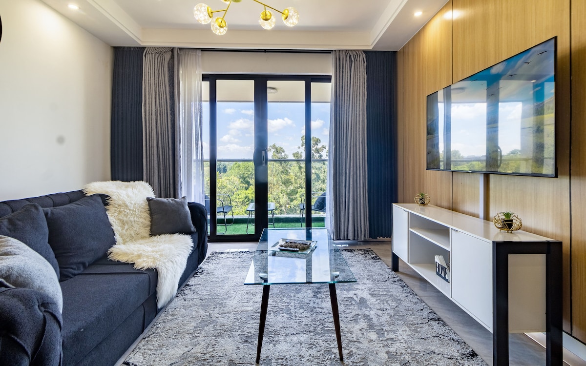 Wake up to sweeping Nairobi skyline views in this elegant 2BR apartment set in secure, tranquil Lavington. Ideal for business travelers, families, couples, and long-stay guests seeking comfort and convenience. Just a 3-minute walk to a 24-hour food market and a mall, and in close proximity to influential areas within Nairobi for easy access to business, dining, and entertainment.