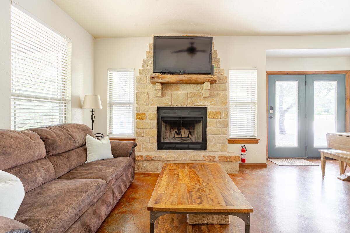 Family & Group-Friendly Escape-5BR lodge on 9 secluded, park like acres w/ pool, hot tub, fireplaces, gourmet kitchen, & dining & sleeping for 22. 4 king beds, billiards, darts, games, & more. Walk to trails, drive 5 min to Medicine Park and Old Fort Sill. Great for reunions, nature lovers, & family fun. Pets welcome w/ fee. Prices based on # of guests. > 30 people venue fees apply. Events of 30-50 $250, 50-75 $500, 75 to 125 $1,000 rent up to 80 chairs ($2.75 ea) & 8 tables ($10 ea)