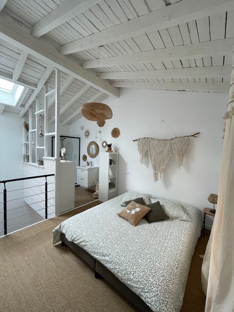 Joya de vegetación en el corazón de la ciudad, este alojamiento tranquilo le invita a relajarse. Disfrute de una cocina totalmente equipada con té, café, condimentos y zumo de bienvenida, un baño con bañera, ducha y productos de bienvenida. Déjese mecer por un cielo estrellado, vibre gracias al Home Cinema y relájese con alfombras de yoga y mancuernas. Cada detalle está pensado para una experiencia única. Ideal para una estadía romántica, una escala familiar o un viaje de negocios.