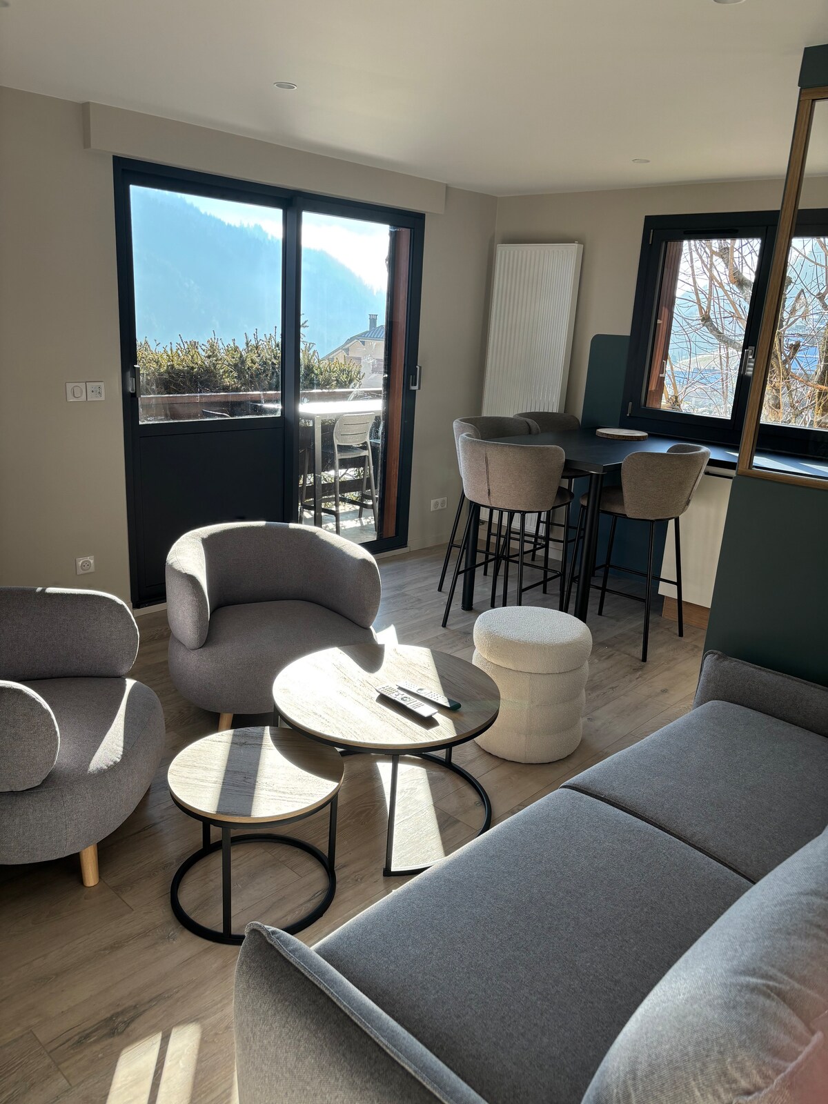 Nous vous accueillons dans notre chaleureux Appartement, vue Montagne, baptisé The Wolf, d'environ 40m2 refait à neuf en 2019. Comprenant même "un pas dans le vide" au 1er étage comme celui de l'aiguille du midi ! A 100 Mètres des pistes de ski et 10min en voiture de Chamonix. Vous vous sentirez comme chez vous ! We are enjoy to welcome you in our cozy appartment name's The Wolf, around 40m and renoved in 2019, Mountain View. Just next to the slopes 100m and the city Chamonix 10min drive!