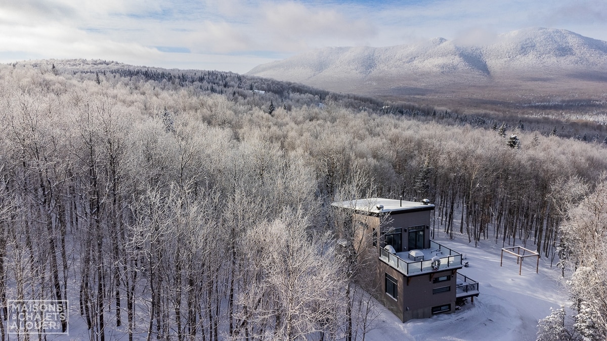 El rifugio es el lugar ideal para refugiarse. Un remanso de paz en plena naturaleza, rodeado de montañas hasta donde alcanza la vista. El Rifugio te ofrece la libertad de establecer un vínculo auténtico con la naturaleza y disfrutar de tiempo de calidad solo o con otros. Tan pronto como entres por la puerta, serás recibido en un ambiente cálido y acogedor. Las grandes ventanas ofrecen una magnífica vista de las montañas circundantes y a lo lejos podemos ver la punta del lago Mégantic.