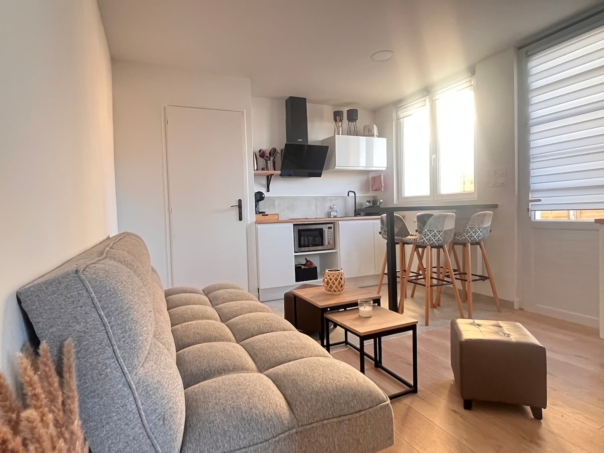 Studio idéalement situé en hyper centre, à proximité immédiate de la Place de la Vendée, Place Napoléon avec grande terrasse offrant une vue exceptionnelle sur la ville - 6ème étage avec ascenseur Proche de toutes les commodités : bars, resto, accès à tous les bus et gare à pied Studio lumineux et fonctionnel avec un grand lit de 160x200, une cuisine équipée (four, lave-vaisselle, frigo/congél) ouverte, bureau... Plage la plus proche : Sables d'olonnes à 30 minutes