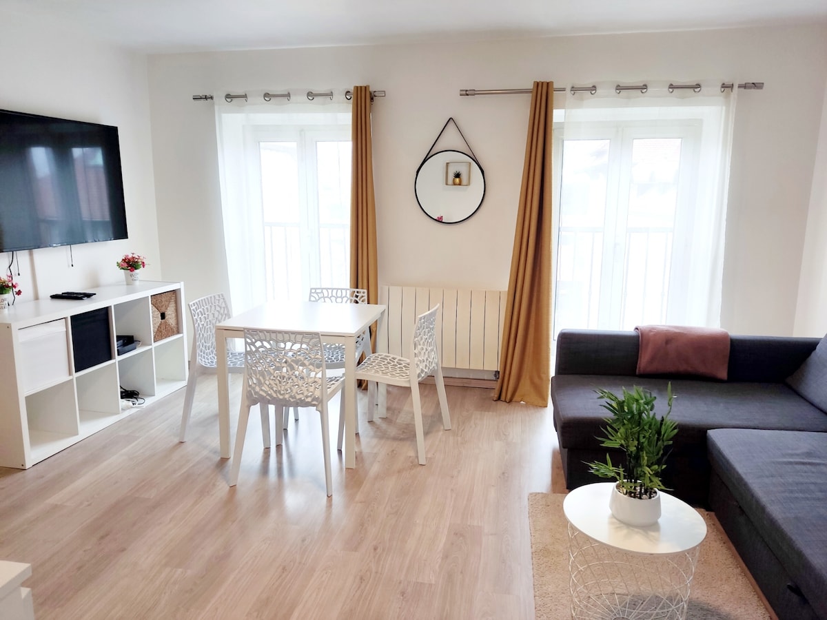 DOMÈNE – Cœur de village Spacieux appartement pour deux personnes, situé dans une petite copropriété calme, à deux pas des commerces et commodités. 🚍 Accès direct à Grenoble via la ligne de bus TAG 15 (arrêt Verdun Préfecture) 🍞 Commerces au pied de l’immeuble : supermarché, boulangeries, traiteur, restaurant italien 🛏️ Literie neuve pour un sommeil réparateur 📶 Connexion fibre optique haut débit 📺 Smart TV 146 cm pour vos soirées détente Bienvenue chez vous !