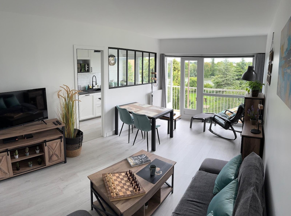 ¡Vista de 180° del Sena! Cerca de París. Alojamiento de 94 m2 acogedor y tranquilo, cerca de los castillos de Versalles y St Germain en Laye. El apartamento incluye: - 1 estancia doble con espacio de trabajo - 2 dormitorios con camas dobles - 1 baño - 1 baño con ducha - 1 cocina - inodoro separado Lado oeste: ¡gran terraza + logia protegida para disfrutar de impresionantes puestas de sol! Lado este: ¡vista de la Torre Eiffel! Estacionamiento gratuito en el lugar. A 25 minutos de PARÍS (RER a 12 minutos a pie o 5 minutos en autobús)