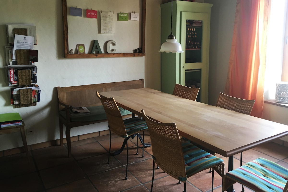 Bonito apartamento de 3 habitaciones totalmente equipado en 1ª planta con balcón en una casa unifamiliar para 2 familias. Ideal para 2 personas, se pueden añadir 2 niños. -Zona rural, ideal para ir en bicicleta, hacer senderismo y bañarse en el Aare (5 minutos) -Situado en la ruta ciclista 44, cerca de las rutas 5 y 8 -Transporte público muy próximo, a 100 m, con conexiones fáciles hacia Biel, Berna, Basilea y Zúrich - Acceso a la autopista N5, Grenchen a 2 km