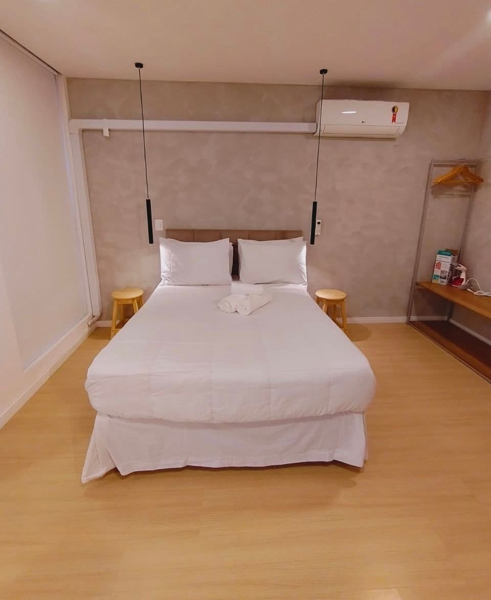Relájese y disfrute de los momentos en este espacio tranquilo y con estilo. Situado en el lujoso condominio del Apart Hotel Orizzonte, este loft cuenta con mucha comodidad y una de las vistas más exclusivas y hermosas de Brasil. Apartamento en concepto abierto sala y cocina, también cuenta con 1 dormitorio, vestidor, baño y 2 balcones con vista a un Postal. Apartamento equipado con 1 cama doble Queen en el dormitorio y 1 sofá cama doble en la sala de estar. Microondas, nevera, televisión y aire acondicionado en el dormitorio