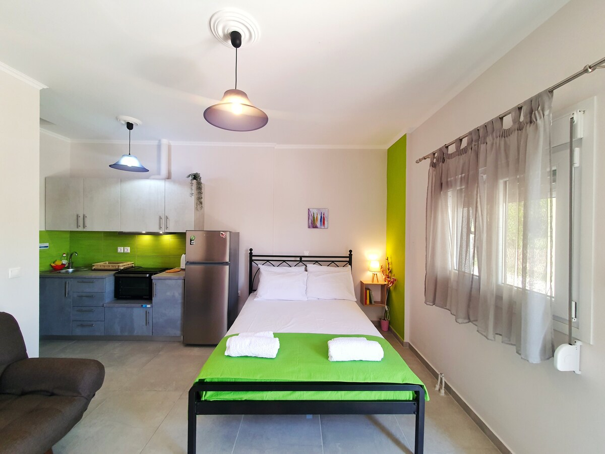 Bienvenido a Ouranos. Disfruta de este espacioso apartamento loft con techos altos y una magnífica vista del mar Jónico y el cielo. Capacidad para 4 personas con una cama doble en un dormitorio privado y otra cama doble en un espacio abierto en el loft. Una cocina completa y una lavadora también están disponibles para tu comodidad. Junto al océano y cerca de Nikiana, un lugar perfecto para relajarse o explorar.