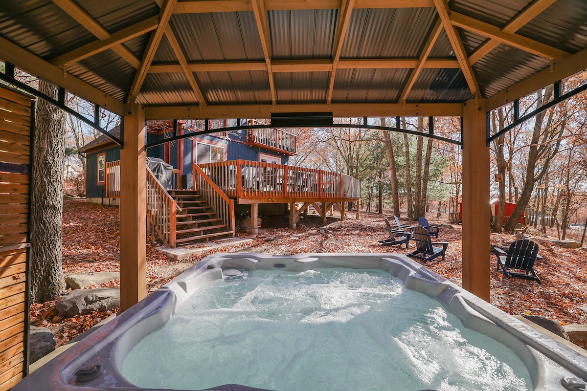 Olibear: Esta casa diseñada por arquitectos, con 156 evaluaciones de 5 estrellas, es ideal para parejas, familias o para cualquiera que sueñe con la felicidad junto al lago. Ubicada junto al agua, nuestra cabaña rústica ofrece un encanto cálido en medio de paisajes florecientes o serenidad soleada. Relájate junto a la piscina comunitaria cubierta (¡abierta casi todos los días!) A solo 20 minutos de Shawnee, a 45 minutos de Camelback y a 5 minutos de Bushkill Falls. Sumérgete en el jacuzzi privado, rema en kayaks o canoas, camina o relájate junto al fogón. ¡Reclama tu acogedora escapada a la cabaña ahora!