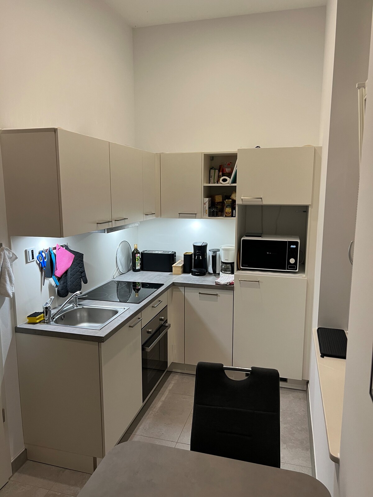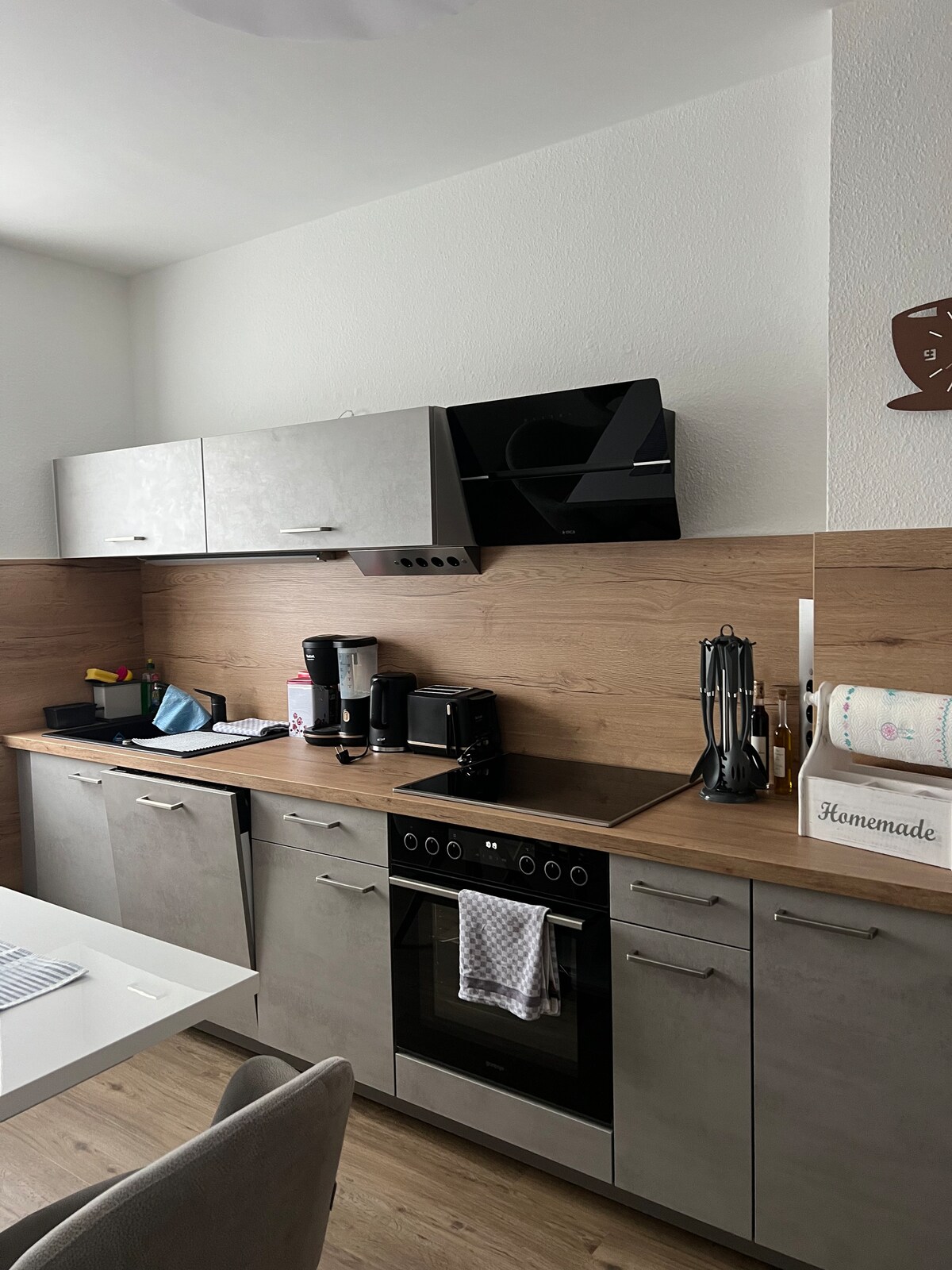 Apartamento de 30 metros cuadrados en casa renovada para dos familias Entrada Habitación principal cama de 1,60 m, sofá (con función para dormir 1,30 m de ancho), mesa de comedor diseñada como aparador Cocina totalmente equipada (electrodomésticos premium, café, té, chocolate para beber gratis) lavabo doble frente a la izquierda de la entrada a la ducha de efecto lluvia abierta a la derecha del inodoro (puerta con cerradura) el. persianas enrollables habitación principal e inodoro Plicidades en todas las ventanas ¡Los vehículos se pueden estacionar directamente frente a la propiedad (callejón sin salida)! Patio aún no reformado