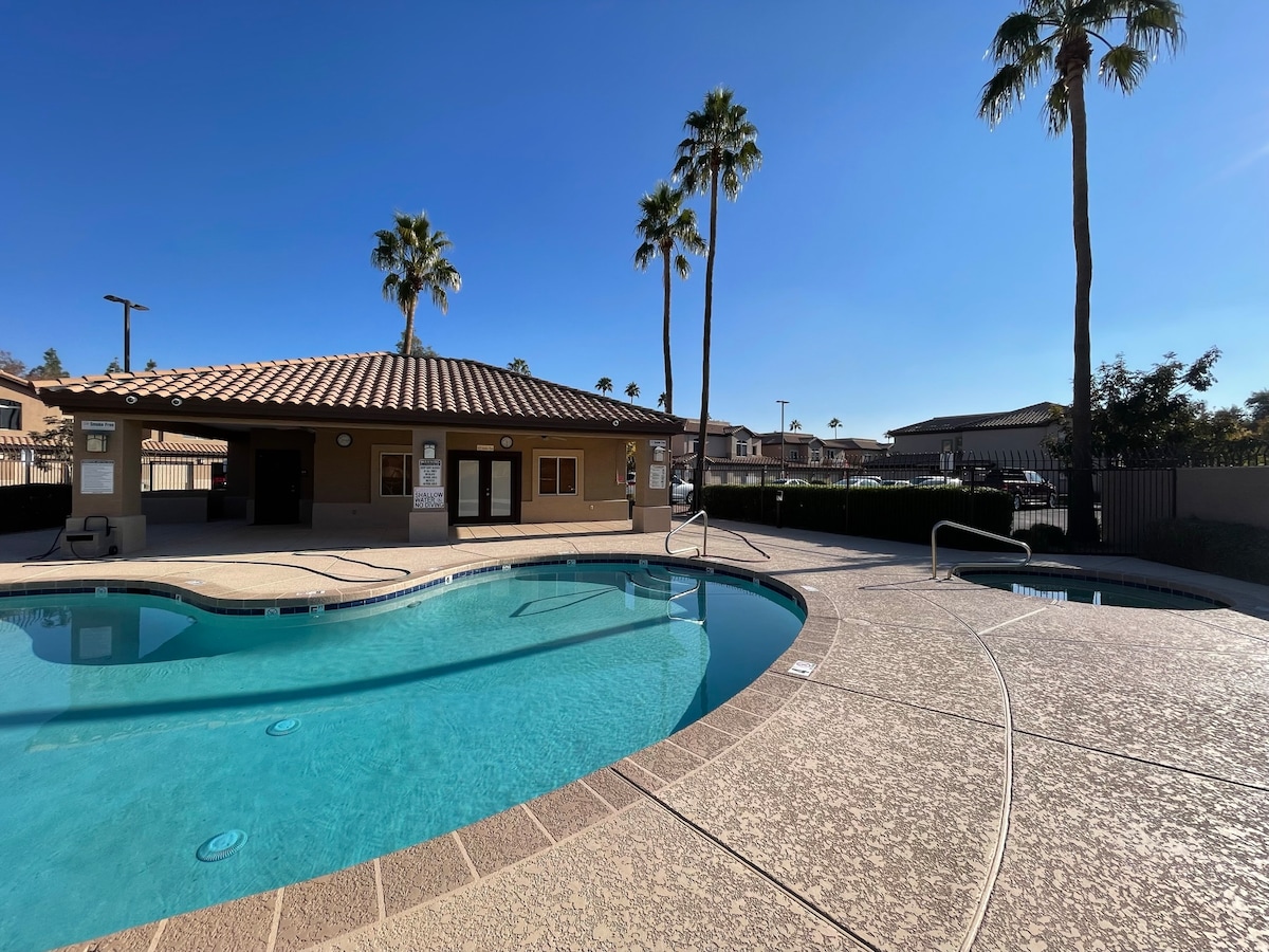 Olvídate de las preocupaciones en este gran alojamiento de 1288 pies cuadrados: ¡es un oasis de tranquilidad! Siéntate en el patio cubierto o relájate junto a la piscina con vistas al Arizona Golf Resort and Event Center en la zona de Golden Hills de Mesa. Nuestro apartamento es una unidad de esquina de nivel inferior. Debido a los requisitos de la Asociación de Propietarios, no se admiten menores de 18 años. Si tienes entre 19 y 21 años, debes estar acompañado por un progenitor o tutor legal durante todo el tiempo de la reserva.