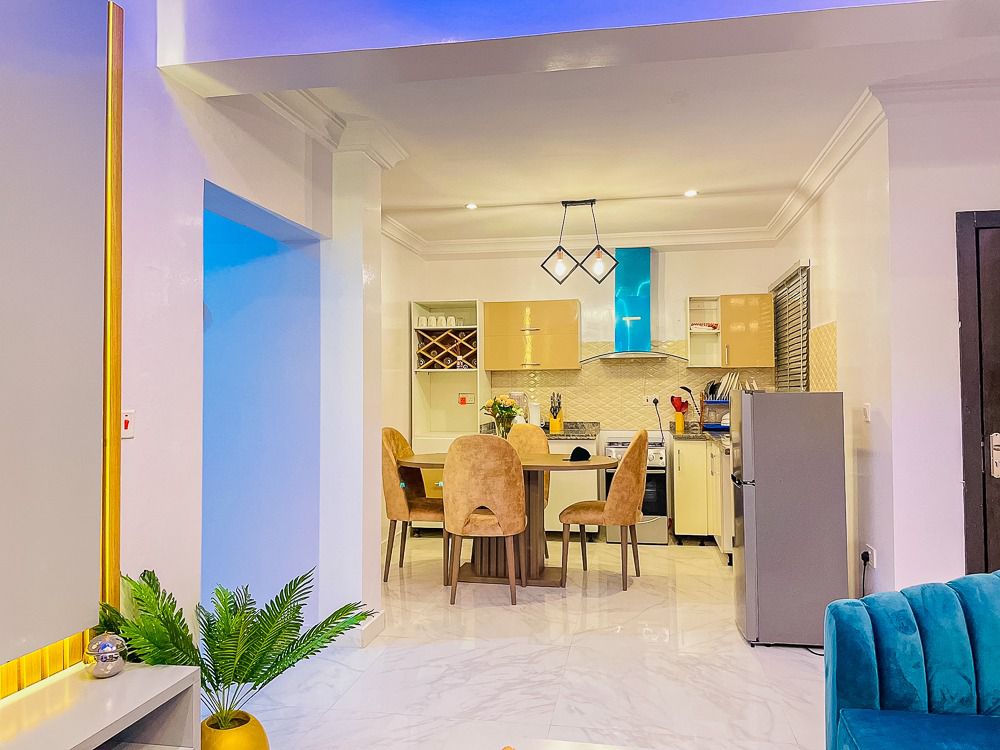 Relájate con toda la familia en este tranquilo y lujoso departamento con servicios de 2 dormitorios ubicado en el sereno enclave del entorno de Akin Leigh, junto a Admiralty Way, Lekki. Este tranquilo apartamento de 2 dormitorios, amueblado con buen gusto, encarna la combinación perfecta de arquitectura moderna, electrodomésticos de última generación y vistas impresionantes con acabados cuidadosamente considerados. El apartamento está equipado con wifi súper rápido (fibra óptica), energía 24x7 y seguridad privada 24x7