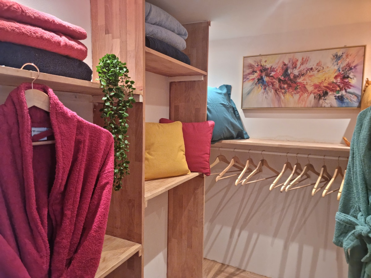 Limpieza gratuita y café ilimitado Terraza: Barbacoa, Fuente, Proyectores LED TV de 65", Netflix, Disney +, Apple TV, Nintendo Switch + 8 juegos, sonido 5.1, Sofá cama, juegos de mesa Placas de inducción, horno, freidora, Lavavajillas, y + SdB: Lavadora+secadora, Plancha, Secador de pelo, Toallas, Albornoces Habitación: Colchón de memoria, Almohadas de memoria, Platino Vinilos+discos