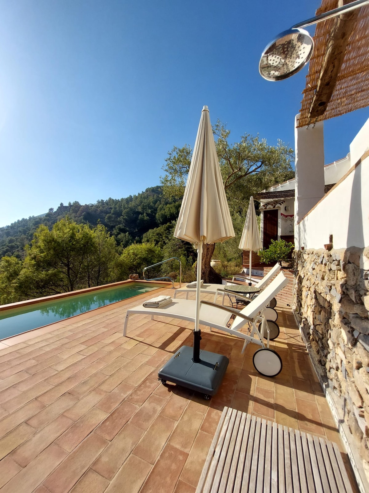 Esta encantadora casa de campo tiene capacidad para alojar a cuatro personas cómodamente. Tiene dos baños, una sala de estar, un comedor y cocina completa. El aspecto más impresionante de la casa es su ubicación que goza de vistas panorámicas con vistas al valle montañoso, visualmente distinto con sus olivos en terrazas, naranjos y almendros, entre otros. La propiedad también tiene un jardín y una pequeña terraza con una barbacoa y un horno de leña.