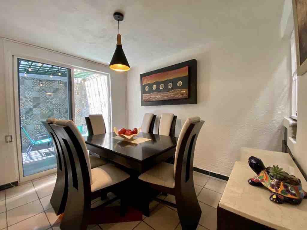 Amplia casa ajardinada, con todas las comodidades para una excelente estancia. La planta baja es de amenidades; cancha de futbol, asador, palapa, baños, regaderas, vestidores, alberca, vapor, temazcal, jardines y acceso para vehículos. En la planta alta encontraras el área de descanso con amplias habitaciones, baños, sala comedor y cocineta completamente equipadas, con una espectacular vista a las áreas verdes que la rodean. Sin ir tan lejos de la ciudad, seguro lo disfrutarás. ¡Te esperamos!