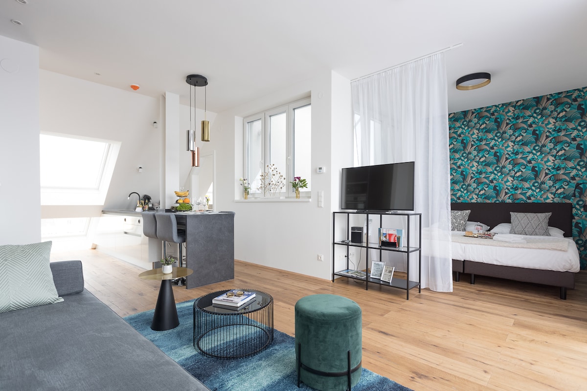 ¡Vida prémium entre Schönbrunn y el casco antiguo de la ciudad! Este apartamento recién reformado es el hogar perfecto lejos de casa. SERVICIOS: - Estación de metro (U4 Margaretengürtel) a la vuelta de la esquina. - Aire acondicionado y calefacción por suelo radiante. - Smart TV y altavoz Bluetooth BOSE. - Cocina excelentemente equipada. - Balcón, perfecto para disfrutar de una puesta de sol después de un largo día en la ciudad. - Cama tamaño king con somier (200 x 200 cm). - Nuevo baño con una increíble ducha de efecto lluvia. - Enorme terraza privada en la azotea.
