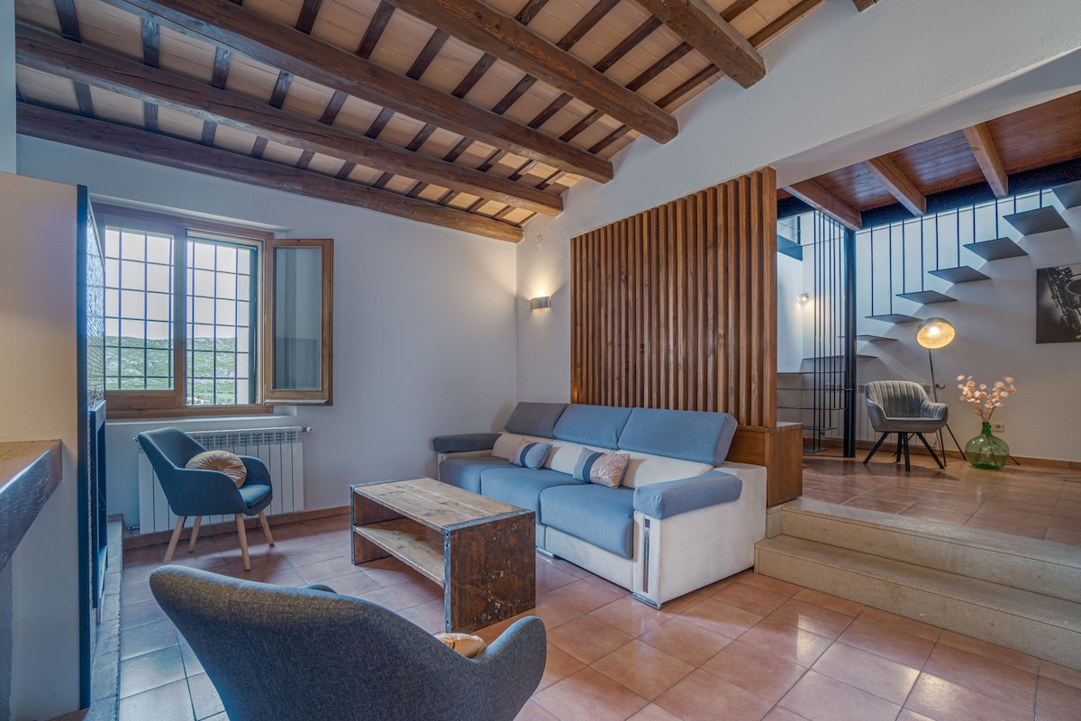 Les ofrecemos alojarse en un entorno rural donde poder disfrutar de unas vistas espectaculares mientras toman un baño en la piscina. El sitio es tranquilo y el loft acaba de ser reformado manteniendo la esencia rústica y practica al mismo tiempo. El dispone de planta baja con salida directa al patio con cocina, baño y salón, y primer piso abierto con cama de matrimonio. El patio es ideal para poder tomar el desayuno por las mañanas o cenar a la fresca. La piscina és compartida con nosotros.