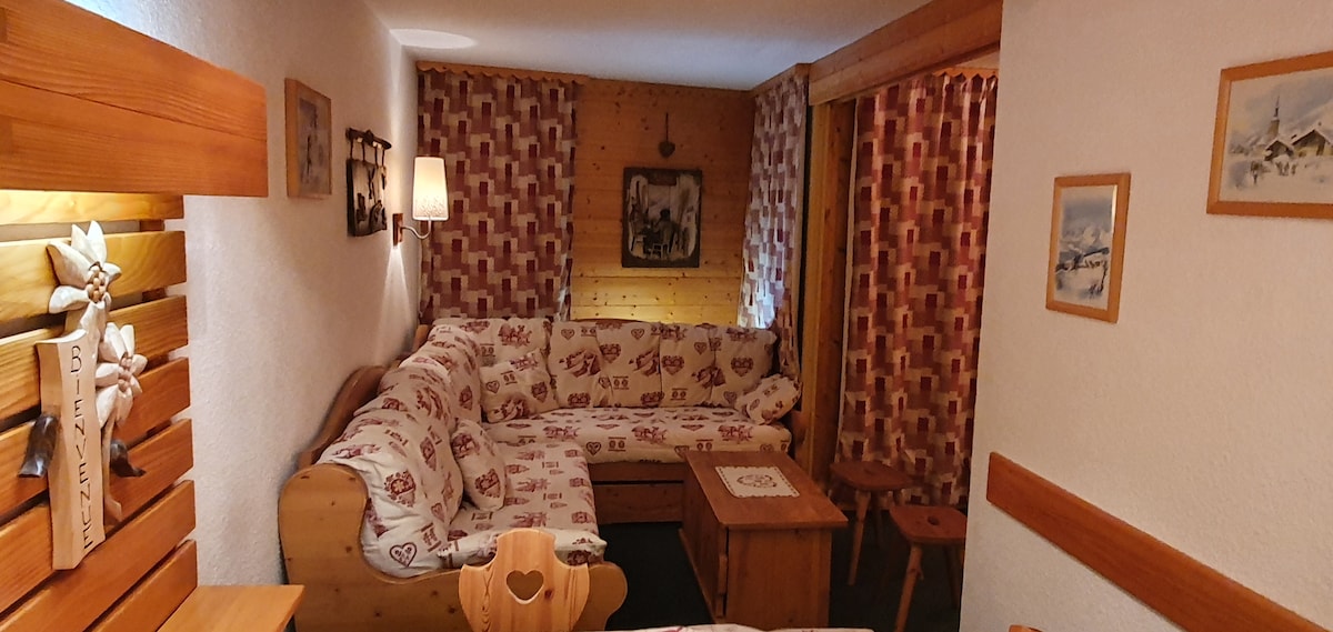 Estudio cabaña reformado de 17 m2, ideal para 2 personas, pero con capacidad para 4 personas Dispone de 4 camas, un sofá cama doble en el salón y 2 camas plegables en la entrada A 2 minutos a pie de los remontes (150 m) y cerca de todos los comercios, una parada de transporte gratuito está justo debajo de la residencia El apartamento dispone de lavavajillas, cafetera, tostadora y hervidor de agua, así como de armario para esquís Se incluyen sábanas, toallas y limpieza Wifi gratuito