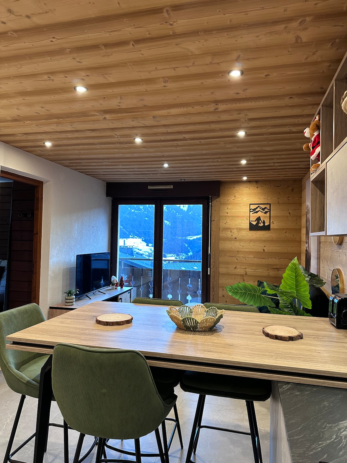 ❄️ Bienvenido a su refugio de montaña al pie de las Puertas del Sol Después de un día en la montaña, encontrará un interior cálido y luminoso, pensado para la comodidad y los momentos compartidos. 🪵 El ambiente acogedor de la madera de pino y las vistas a la montaña invitan a la relajación, tanto en verano como en invierno. 📍 Situado en un pueblo auténtico, a solo 10 minutos (en auto o autobús) de las estaciones, el chalet ofrece un buen equilibrio entre el fácil acceso al esquí y el ambiente tranquilo.